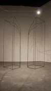 Distilled classical architecture of the ionic column, these two mirrored sculptures reference a vantage point above yourself, seek to create a bodily reference, and in a very linear format creating mostly negative space in the objects.